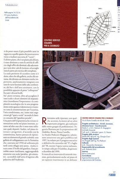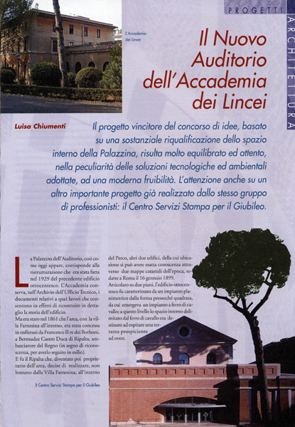 “AR” Bimestrale dell’Ordine degli Architetti di Roma e Provincia n. 47/03 Maggio-Giugno 2003 Il Nuovo Auditorium dell’Accademia dei Lincei - Roma