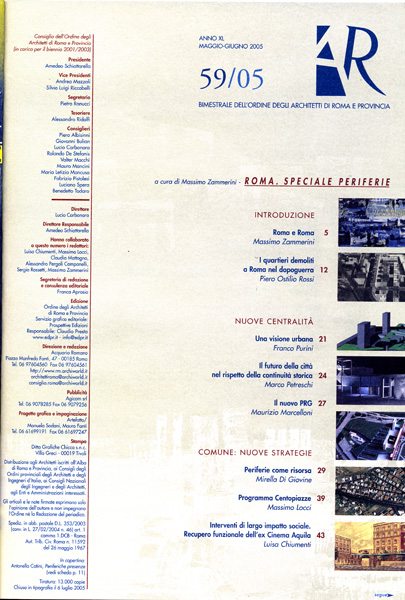“AR” Bimestrale dell’Ordine degli Architetti di Roma e Provincia n. 59/05 Maggio-Giugno 2005 Roma Speciale Periferie