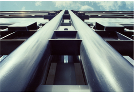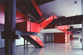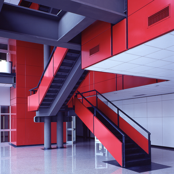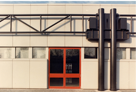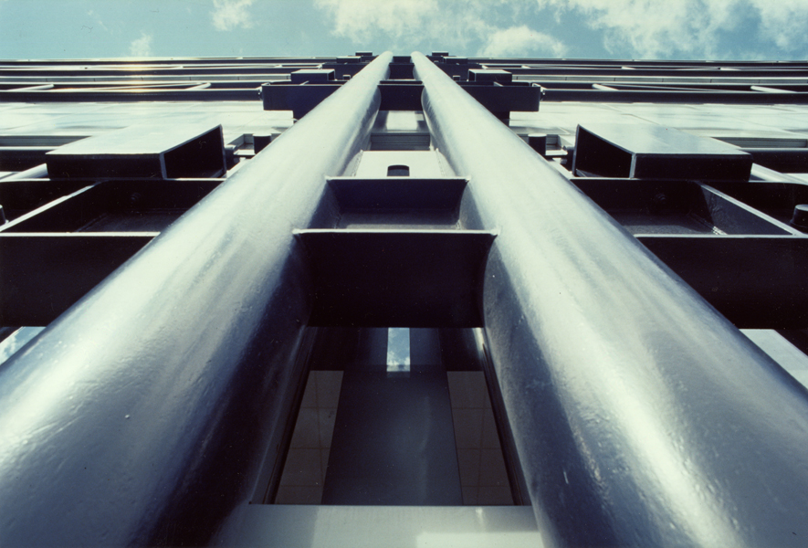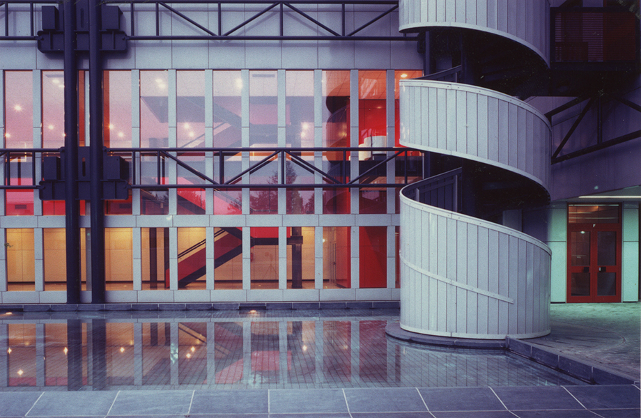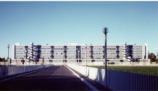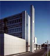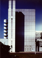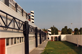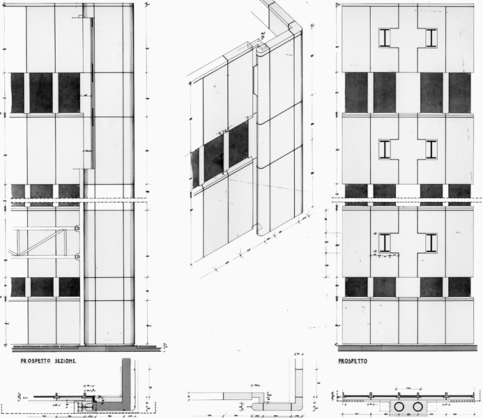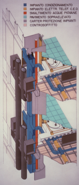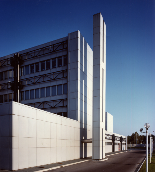 L'edificio è composto di quattro piani per la comunicazione manuale e meccanica, telex; sede del settore nord italiano, con destinazione uffici, sale operative, laboratori, magazzini, sale per macchinari, mensa. La struttura metallica si sviluppa intorno al modulo base con un “macromodulo funzionale” che si adatta alle diverse esigenze che il manufatto deve soddisfare. La gabbia in acciaio è realizzata con pilastri circolari, travi trasversali, e travi reticolari di controventamento, soluzione tecnologica che diviene motivo di composizione. La facciata è realizzata in pannelli di acciaio porcellanato con finestratura a nastro.