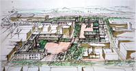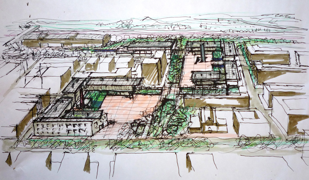 Il progetto di riqualificazione del comprensorio Ostiense prevede un sistema di spazi aperti (piazze, patii e verde) delimitati dai nuovi edifici per la nuova sede degli uffici del Campidoglio. La forma tipologica dei comparti e' a "corte aperta" la cui identita' architettonica viene riproposta nella concezione di un cordone di spazi verdi e gallerie, che uniscono e collegano edifici e servizi della nuova citta' amministrativa; il trattamento tecnologia e l'uso dei materiali quali il travertino e il vetro si propongono in termini di integrazione tra tradizioni romane e nuove tecnologie edilizie.