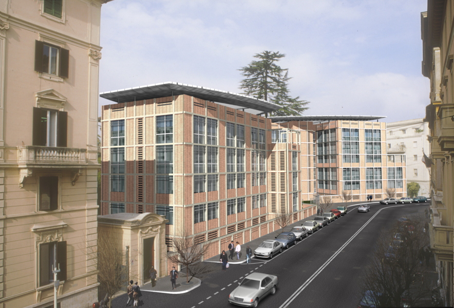 Il progetto consiste nella riqualificazione ambientale, architettonica e funzionale di edifici esistenti da destinarsi alla nuova sede degli uffici nazionali dell' INARCASSA; sono previste la messa a norma, impiantistica e funzionale, il rifacimento delle facciate, la ridistribuzione funzionale degli spazi interni ed esterni, parcheggi, uffici, aule didattiche, sale conferenze, bar e servizi.