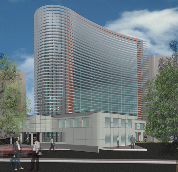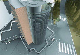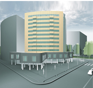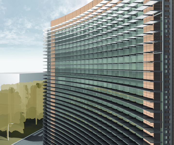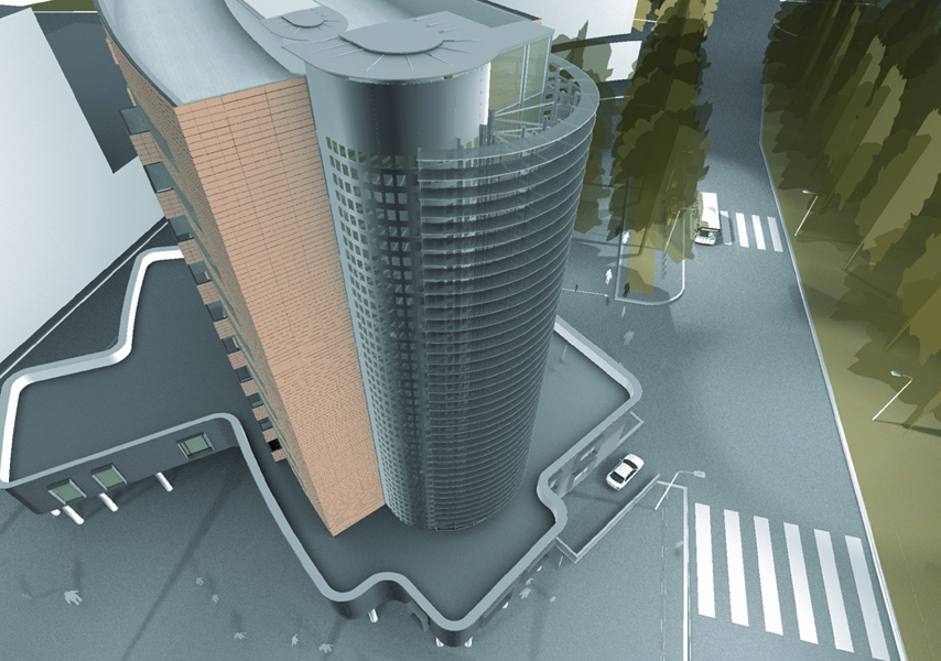 Il progetto prevede una nuova definizione architettonica e funzionale del piano terreno con il nuovo spazio di ingresso-atrio, lo studio dei percorsi, i locali accoglienza per il pubblico, a tutti gli altri piani è prevista una rilocalizzazione dei servizi igienici che verranno accorpati ai due gruppi scale-ascensore; il progetto per le facciate esterne prevede una soluzione tecnologica di tipo misto con parete continua a cellule indipendenti con vetrate e frangisole.